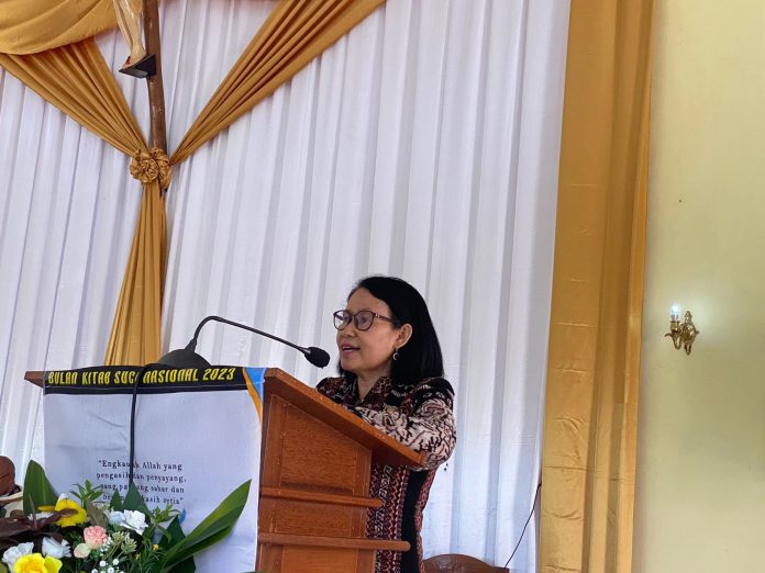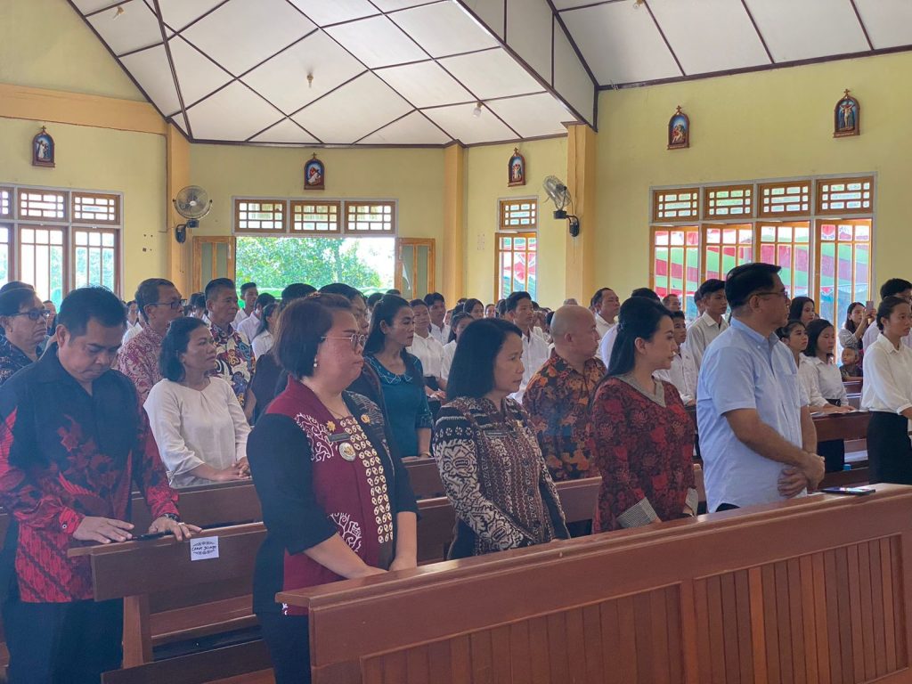 Landak, Kalbar – Asisten Administrasi Umum Sekda Landak Ir. Theresia Limawardani, M.Si mewakili Pj Bupati Landak hadiri Acara Perayaan Ekaristi Misa Syukur Hari Ulang Tahun Paroki Ke-5 Tahun Paroki Mater Dolorosa Jelimpo, di Gereja Mater Dolorosa Jelimpo. Jum’at (15/9).