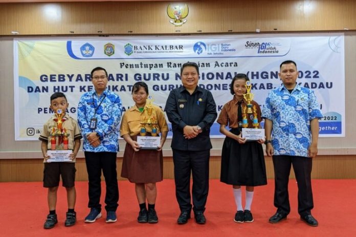 Sekadau, Kalbar – Wakil Bupati Sekadau Subandrio, resmi menutup rangkaian acara Gebyar Hari Guru Nasional (HGN) Tahun 2022 di Aula Serbaguna Kantor Bupati Sekadau, Kecamatan Sekadau Hilir, Kabupaten Sekadau, Jumat (9/12).