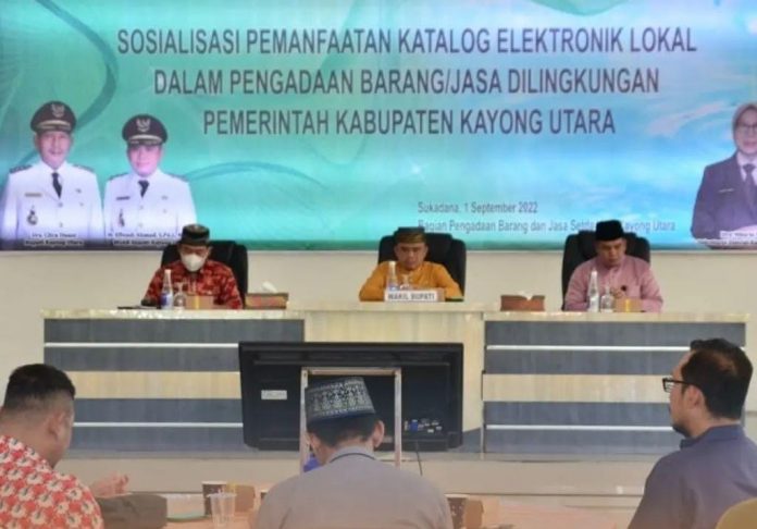 Kayong Utara, Kalbar – Wakil Bupati Kayong Utara Effendi Ahmad membuka kegiatan Sosialisasi Pemanfaatan Katalog Elektronik Lokal (e-Katalog Lokal) Dalam Pengadaan Barang dan Jasa Pemerintah di Aula Istana Rakyat (Pendopo Bupati), Kamis (1/9).