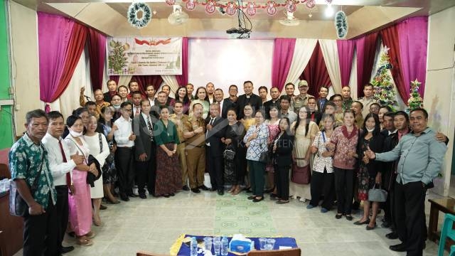 Sanggau, Kalbar – Wakil Bupati Sanggau Drs. Yohanes Ontot, M.Si, menghadiri Ibadah dan Natal Persekutuan Pelayanan Hamba Tuhan Garis Depan (PPHTGD) Kecamatan Tayan Hulu, Selasa (6/12).
