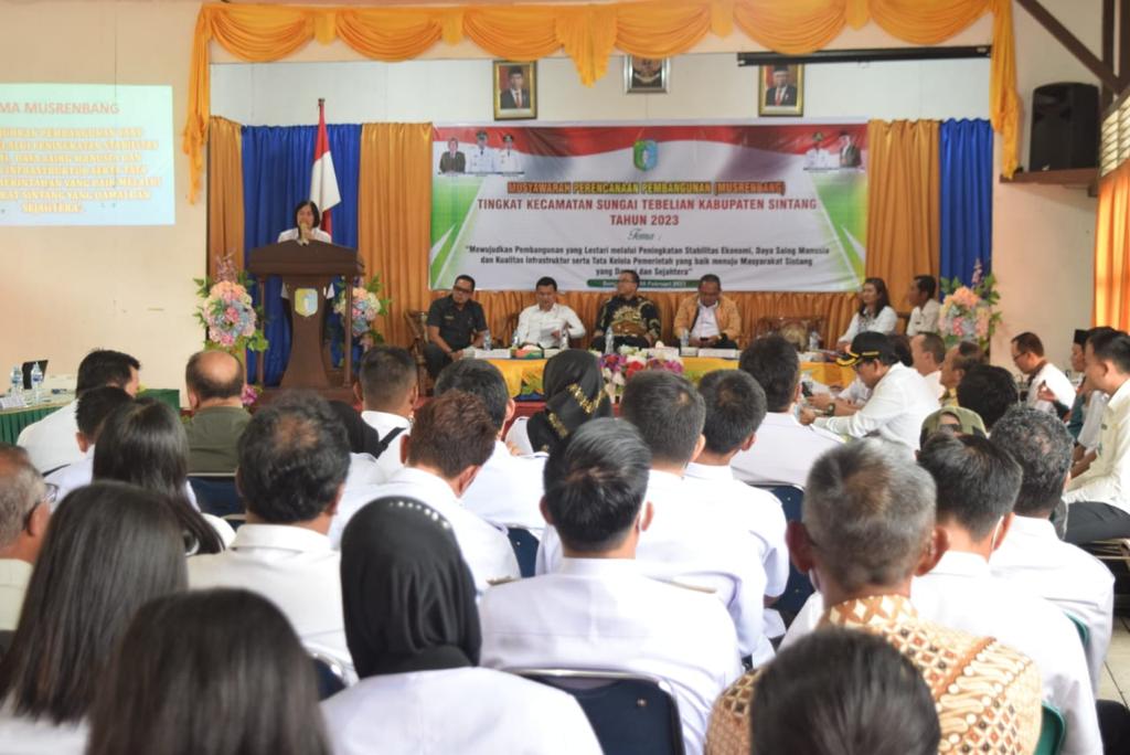 Sintang, Kalbar – Wakil Bupati Sintang Melkianus bersama Sekretaris Daerah Kabupaten Sintang  Yoseph Hasnah menghadiri sekaligus membuka kegiatan Musyawarah Perencanaan Pembangunan(Musrenbang) Tingkat Kecamatan di Gedung Serba Guna Kecamatan Sungai Tebelian pada Rabu (8/2).