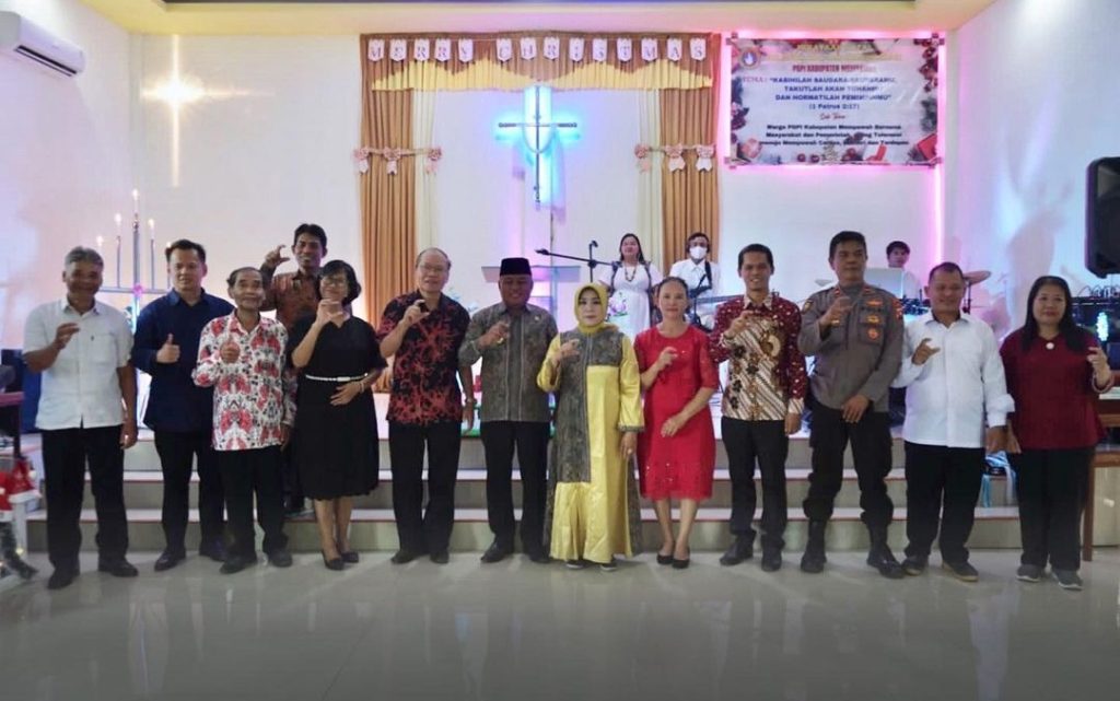 Mempawah, Kalbar – Wakil Bupati Mempawah Muhammad Pagi didampingi Ketua TP PKK Kabupaten Mempawah menghadiri Perayaan Natal 2022 dan Tahun Baru 2023, Silaturahmi dan Konsolidasi PGPI Kabupaten Mempawah di Gereja GPdI El Shaddal Bangkam Desa Bukit Batu Kecamatam Sungai Kunyit, Senin (23/1).