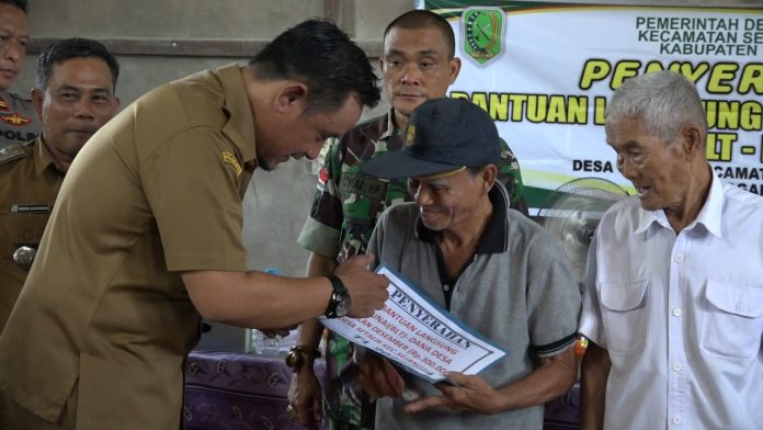 Sambas, Kalbar – Wakil Bupati Sambas Fahrur Rofi menyerahkan Bantuan Langsung Tunai Dana Desa (BLT-DD) tahap ke 12 tahun 2022 kepada Keluarga Penerima Manfaat Desa Setalik Kecamatan Sejangkung, Kabupaten Sambas, di Gedung Serbaguna Desa Setalik, Senin (5/12).