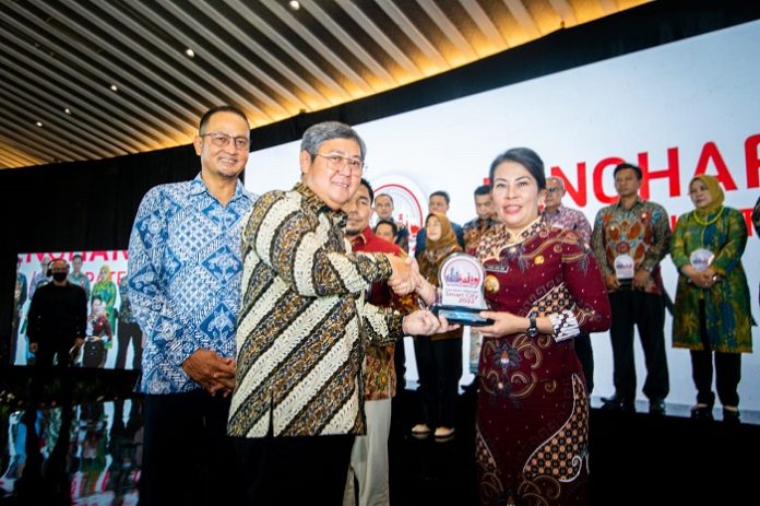 Singkawang, Kalbar – Wali Kota Singkawang, Tjhai Chui Mie menerima penghargaan Gerakan Menuju Kota Cerdas (Smart City) tahun 2022 dari Kementerian Komunikasi dan Informatika RI. Penghargaan diberikan atas keberhasilan menyusun rencana induk (master plan) pembangunan berbasis smart city.